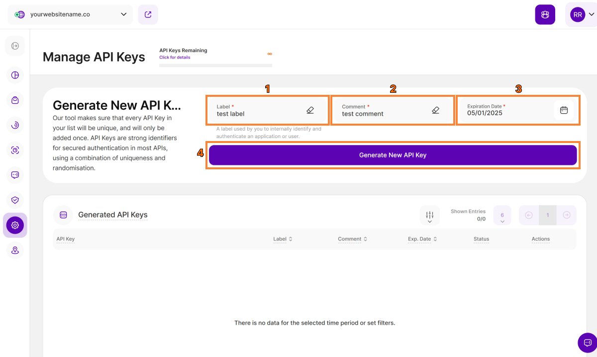 - Enter the domain or subdomain you want to track.