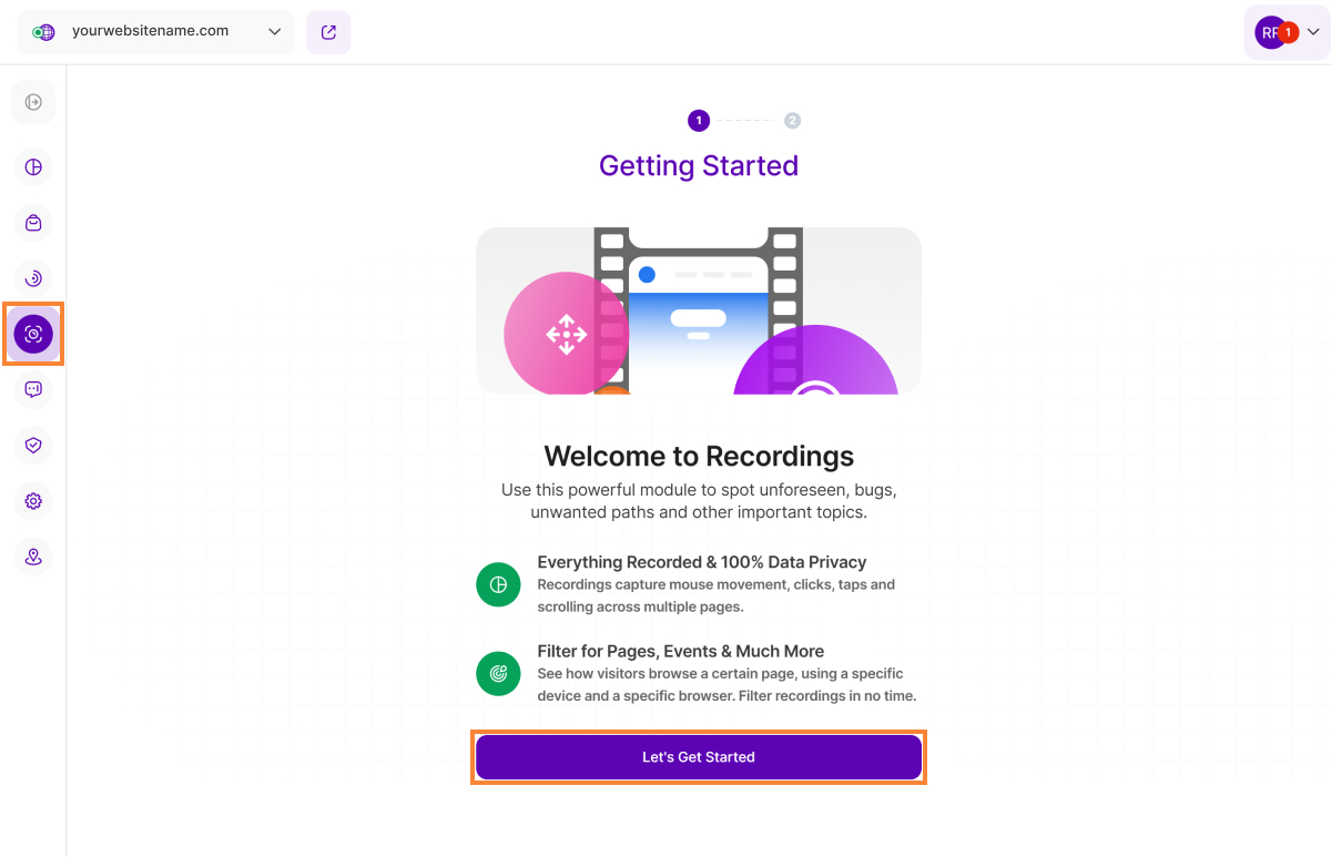 - For the feature to become accessible, it is essential to correctly install the tracking code, enabling the recording of visitor sessions.