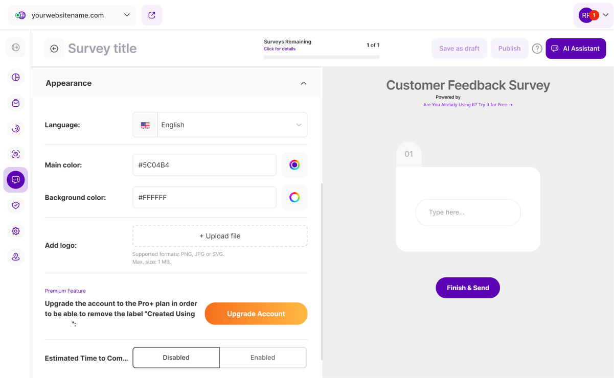 2. Main color: Choose the main color of your survey to match your company identity and website.