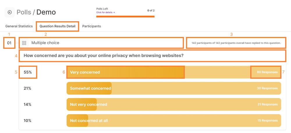 2. Question Results Detail (for Polls only) or Survey Results (for Surveys only)
