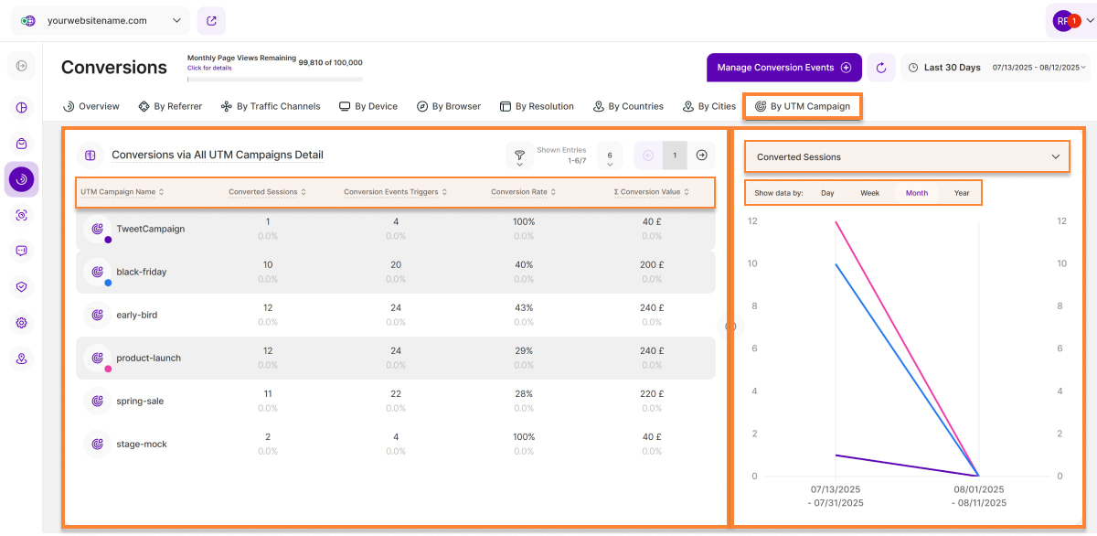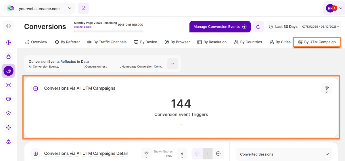 3. Conversion Events Triggers: This column displays how many triggers of conversion events were generated by sessions visiting your website via a specific UTM campaign in the selected time period.