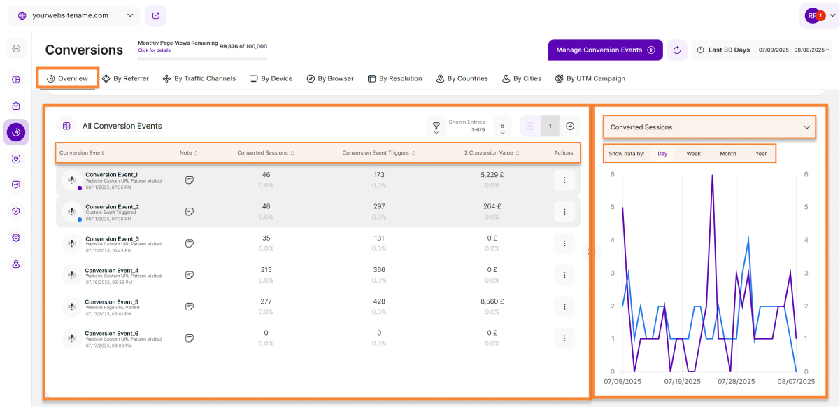4. Conversion Event Triggers: This column displays how often a conversion event was triggered by all your website visitors throughout the selected period of time.