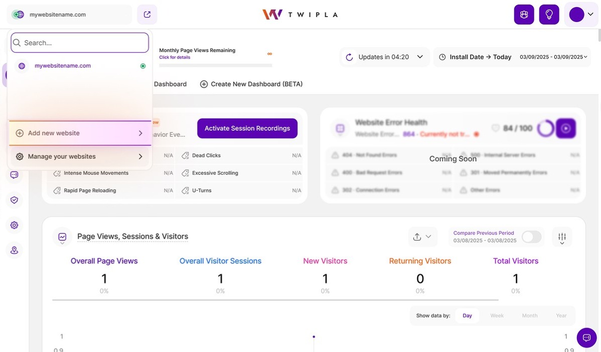 However, to effectively manage a Weebly site, website owners need to track their website traffic. While Weebly lacks built-in analytics, there are plugins available, such as TWIPLA, which seamlessly integrate with Weebly. Once installed, TWIPLA provides you with the following insights and functionalities for better website management: