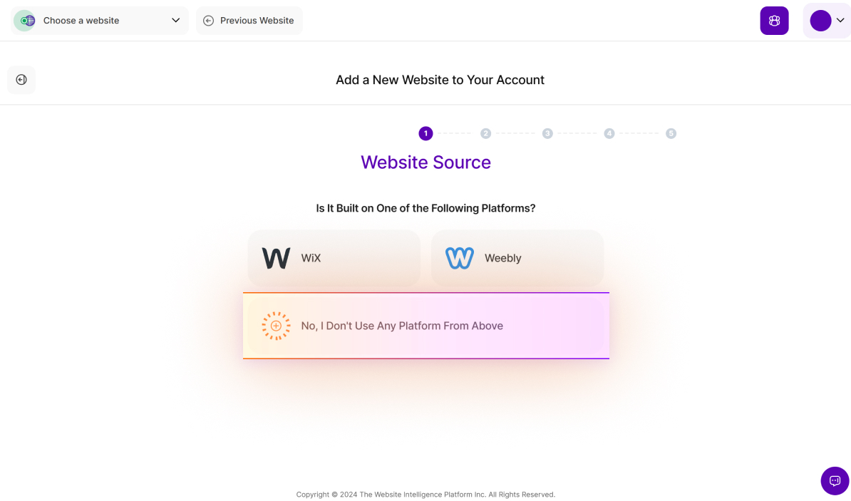 1. Sign in to your existing account here. Click on the drop-down menu in the top left corner and select Add new website.