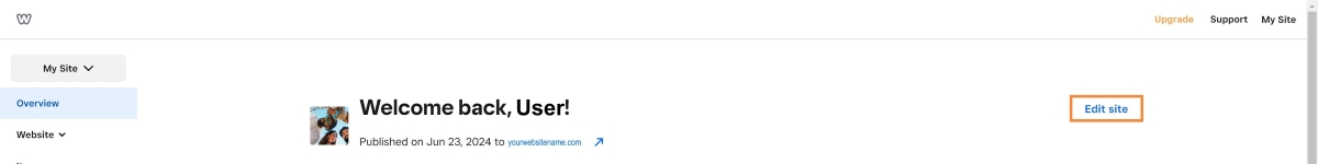 7. Log in to your Weebly account and open the Weebly Website Editor by clicking on Edit Site.