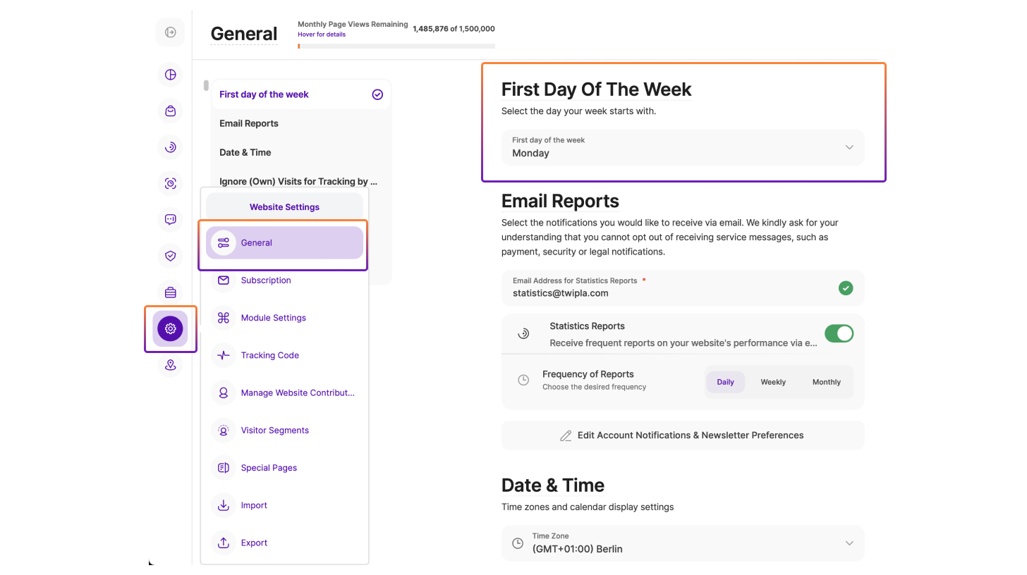 - Go to Website Settings in the vertical left-hand icon menu and click on General.