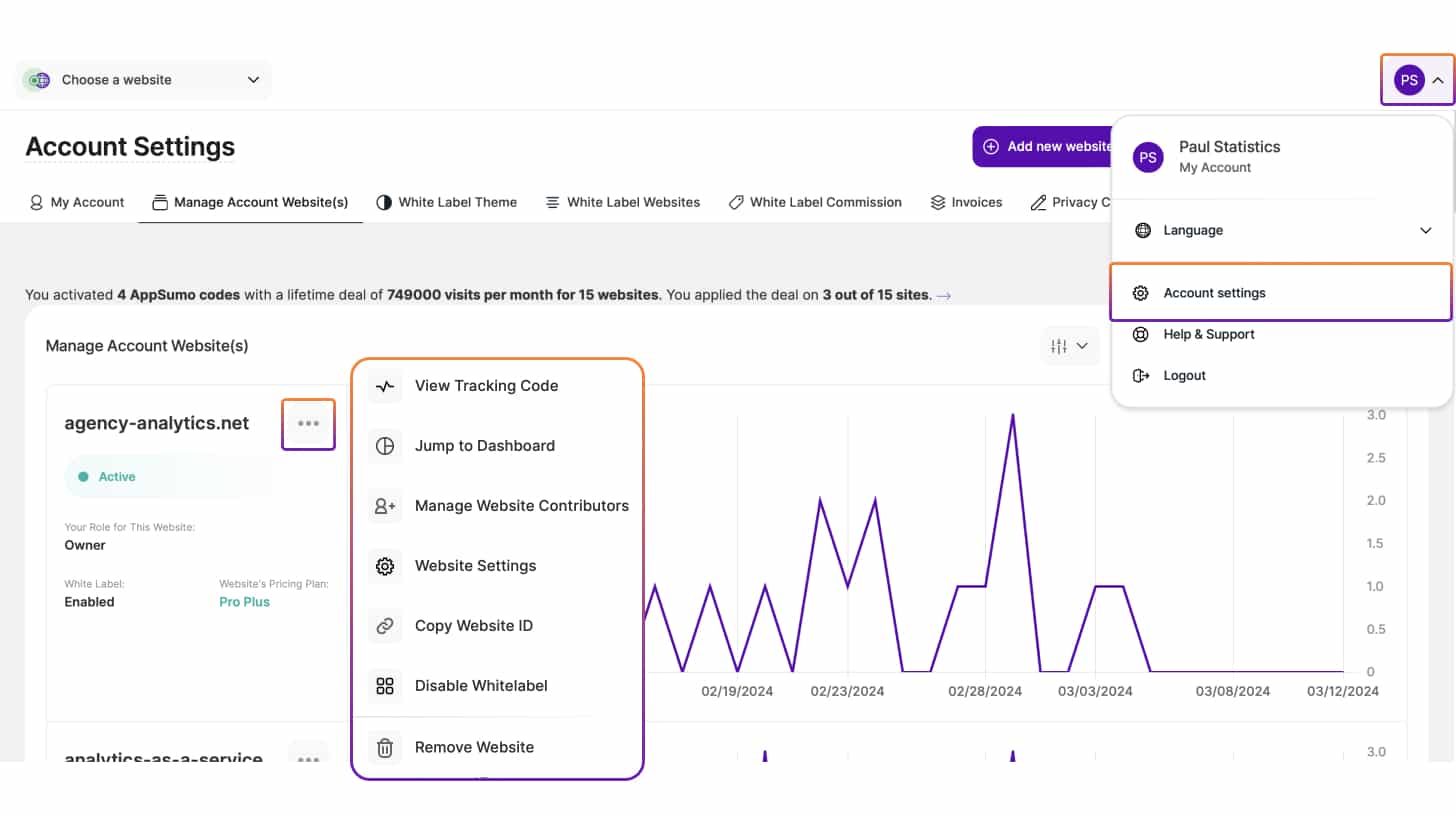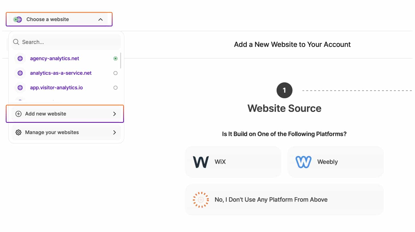 Note: You can add as many more websites as you want to the account once these onboarding steps are complete. Do this by clicking on your website's name in-platform at the very top left corner of your screen, selecting Add New Website, and following the instructions provided.