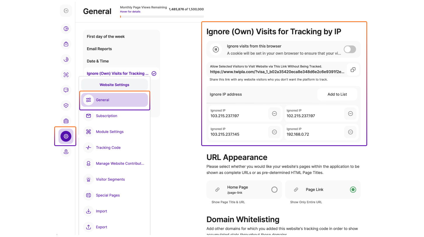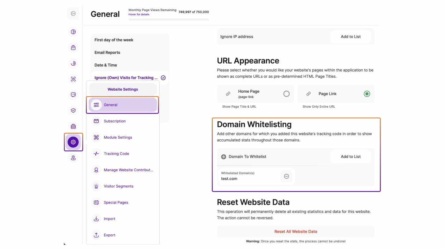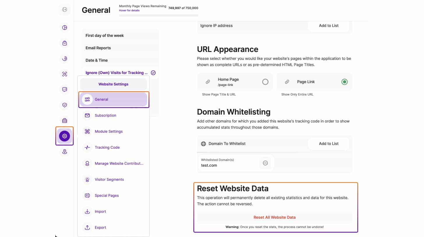 - Go to Website Settings in the left-hand vertical icon menu and click on General.